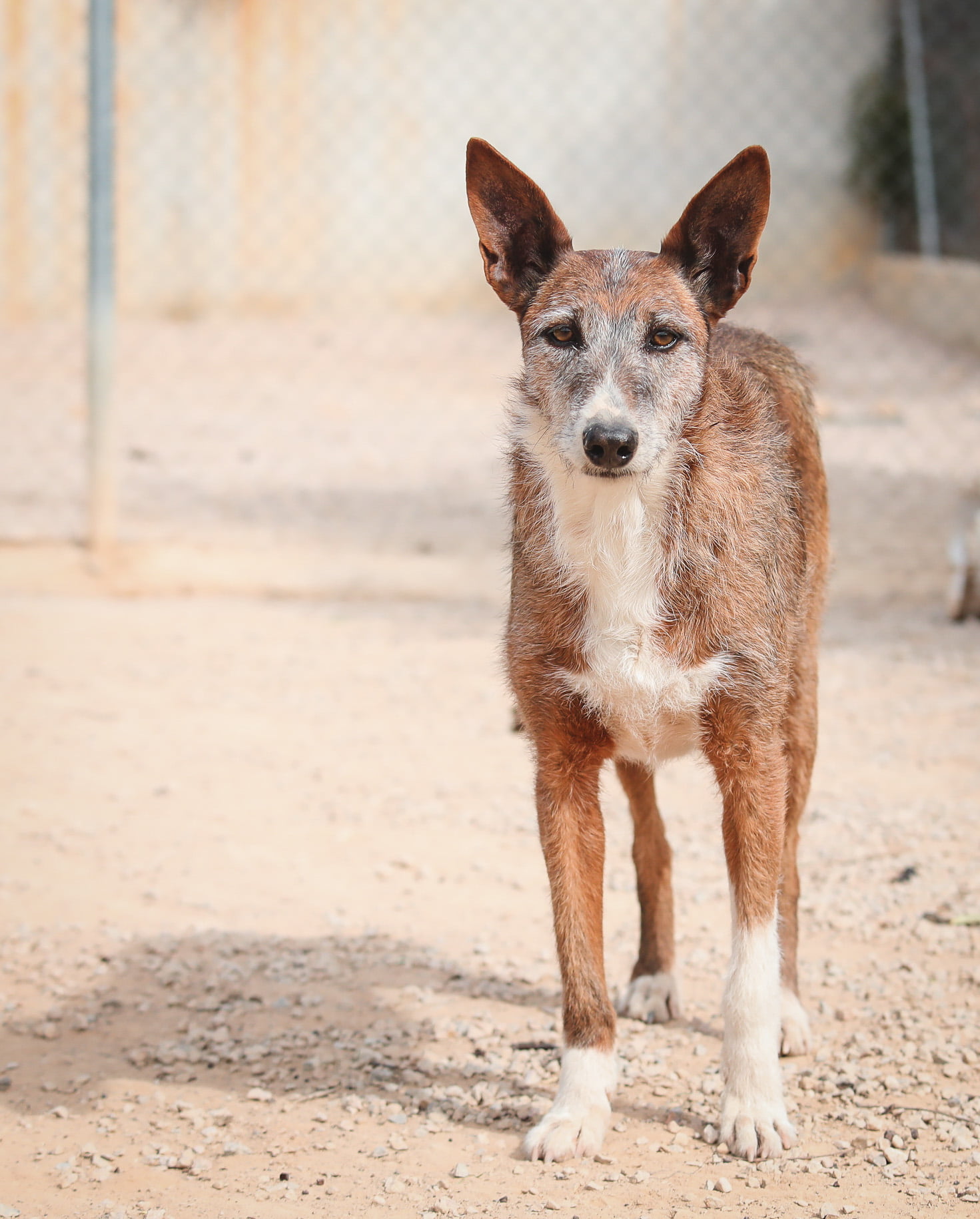 Necesitaré algo de paciencia al principio, respetando mis tiempos y mi espacio, pero con comida y paciencia, viendo que no me vas a hacer daño, me abriré a ti y te vas a enamorar perdidamente de mí. Con otros perretes soy sociable, aunque me pueden dar miedo si son muy intensos. Me iría genial tener un hermano o hermana perruno en la familia que me enseñe a moverme por el mundo, con tantas cosas que serán nuevas para mí.